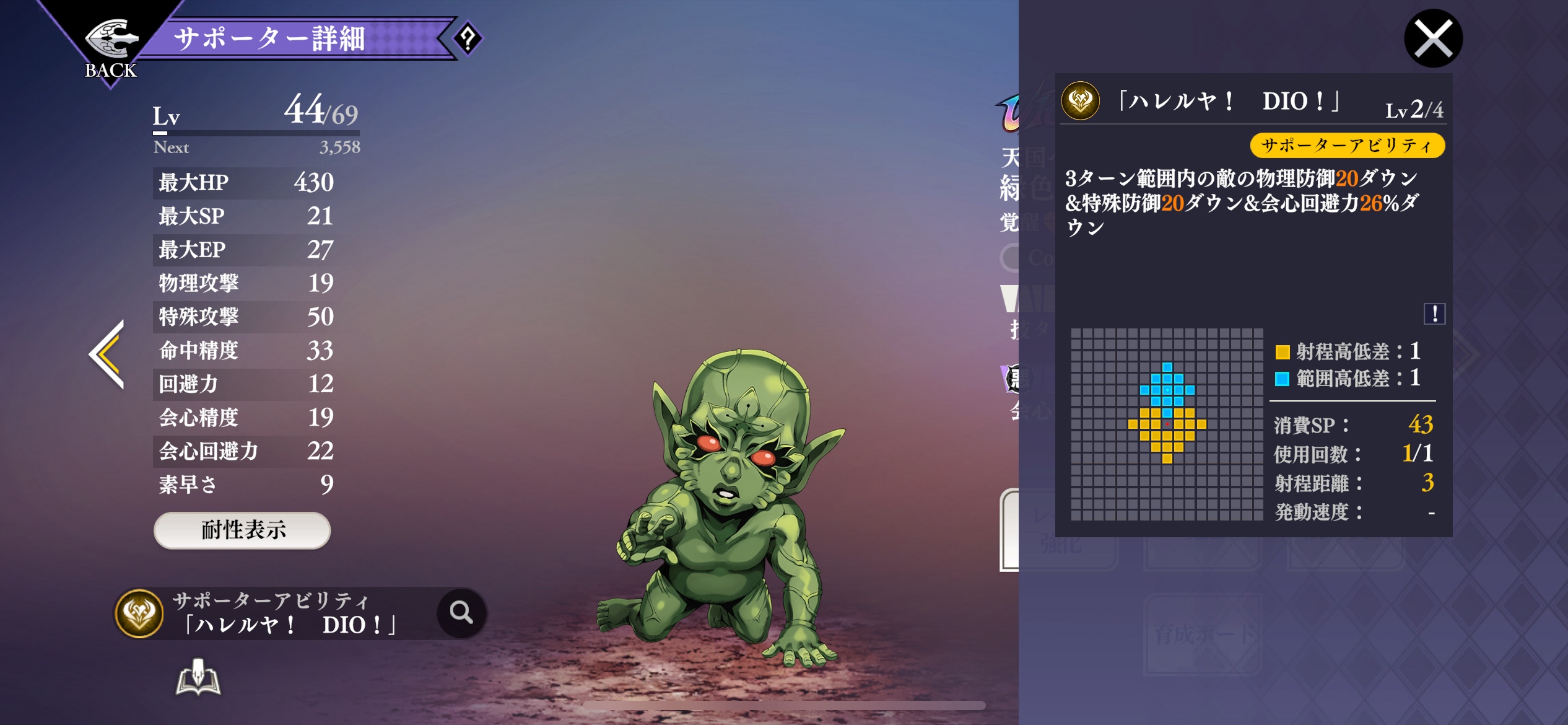 今回はディオだかイギー接待で単体だけど今後範囲接待もするんだろうな