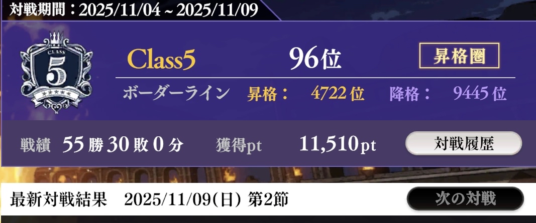 クラス6昇格にあと100足りず無念…😣